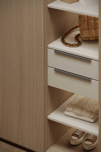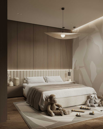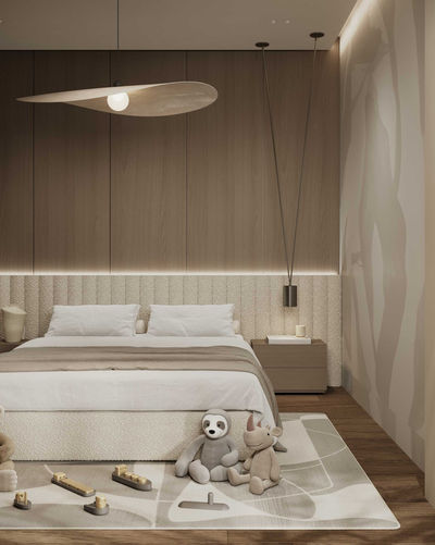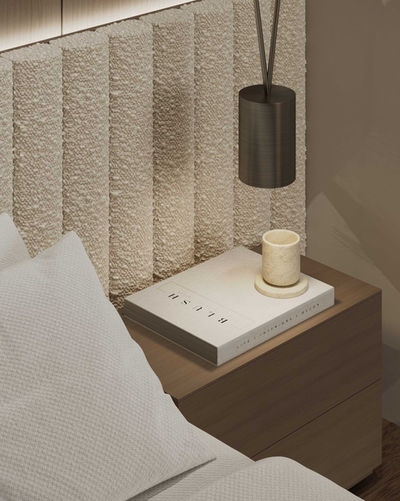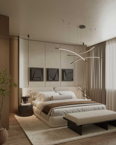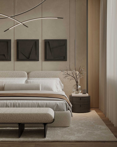 The neo-classical bedroom envelops you in a sense of tranquility with its warm and relaxing color tones, showcasing opulent textures and subtle detailing that ensure a restful and luxurious retreat.