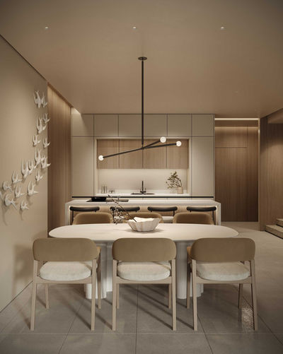 This Dubai villa embodies a refined Japandi concept where Scandinavian simplicity meets Japanese serenity. The design concept focused on crafting a calming retreat that balances modern architecture with nature-inspired textures. Using neutral palettes, soft lighting, and organic materials, the space invites a sense of mindfulness and quiet luxury. Every element—from the sculptural lighting to the bespoke furniture—celebrates harmony and flow within the home.